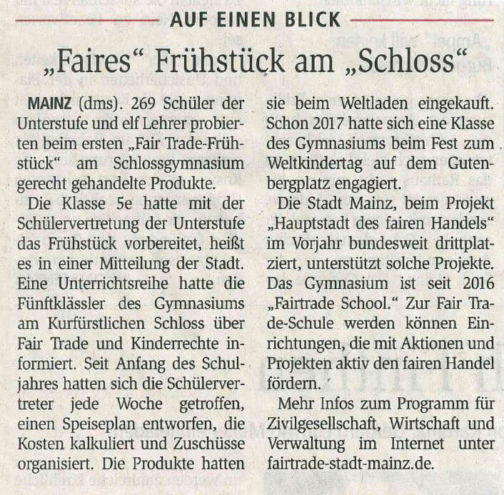 26.01.2018: „Faires“ Frühstück am „Schloss“