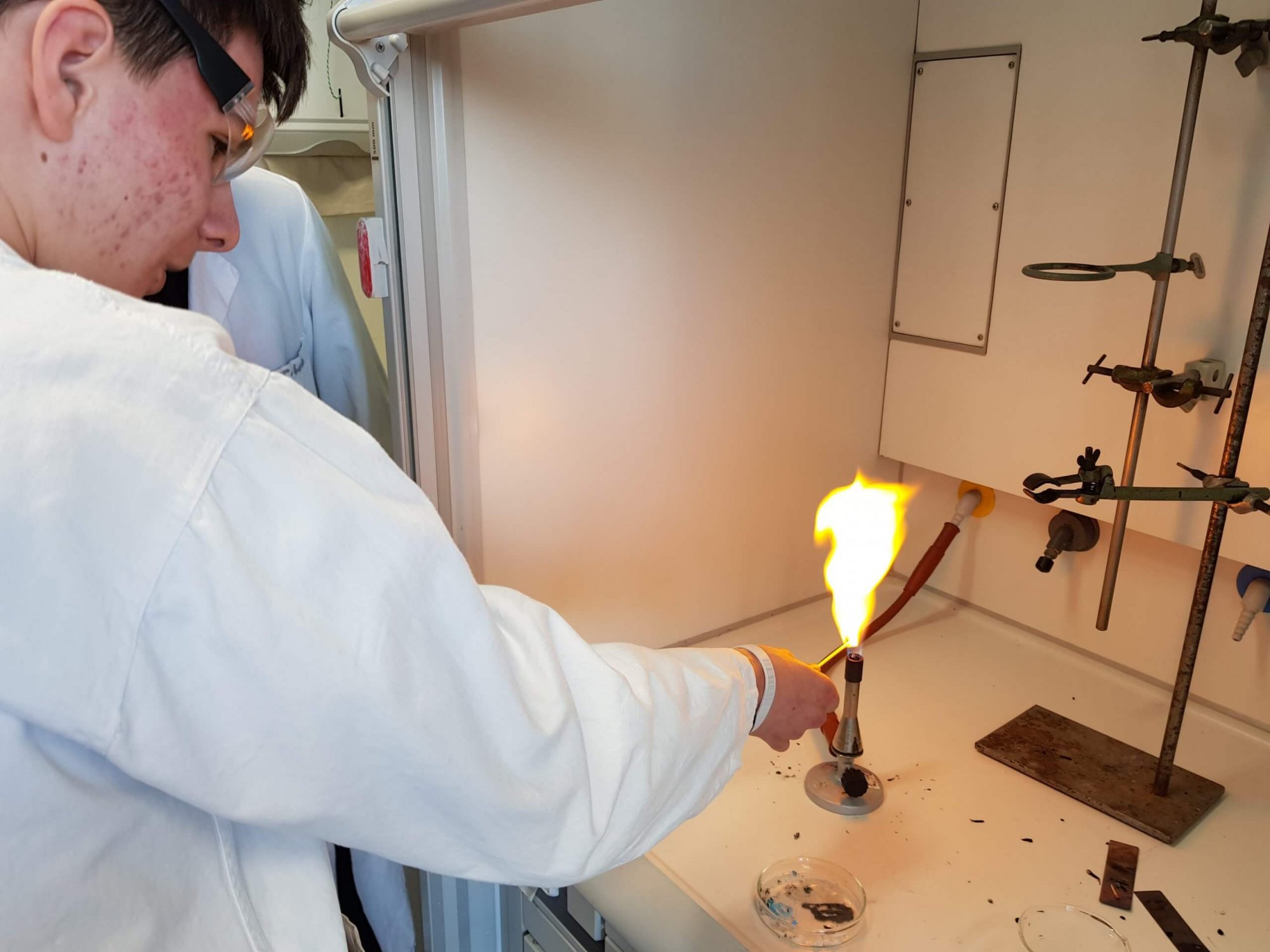 Zum Abschluss des Themenfelds „Vom Erz zum Metall“ besuchten die neunten Klassen des Schlossgymnasiums das Schülerlabor der Universität Mainz. Dies ermöglicht es den Schülerinnen und Schülern einen ganzen Vormittag in Kleingruppen Versuche zur Thematik durchzuführen, die den Chemieunterricht ergänzen.