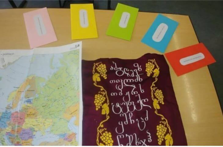 Trotz der besonderen Herausforderungen durch die Corona–Pandemie hat Tamuna, nachdem die Schule im Mai wieder öffnete, in der Klasse 5b das Projekt „Deutsche und Georgische Märchen“ vorbereitet und durchgeführt. Das Ziel des Projekts war, die Übereinstimmungen und Unterschiede zwischen der georgischen und deutschen Märchenwelten für einen interkulturellen Austausch fruchtbar zu machen und die Schülerinnen und Schüler durch die Verwendung von vielfältigen Methoden zu produktiver und kreativer Arbeit mit georgischen Märchen anzuregen. Nach einer kurzen Einführung in das Land und in die Kultur Georgiens konnten die Schülerinnen und Schüler die Videofragen von georgischen Gleichaltrigen beantworten, anschließend den georgischen Märchentext unter die