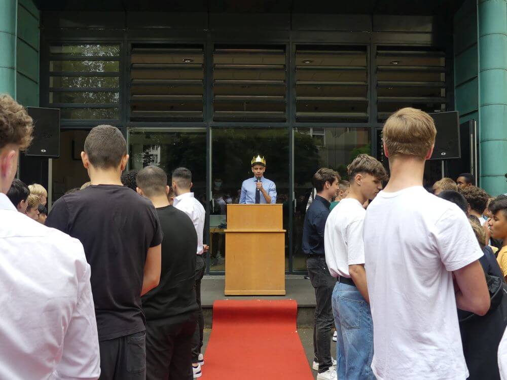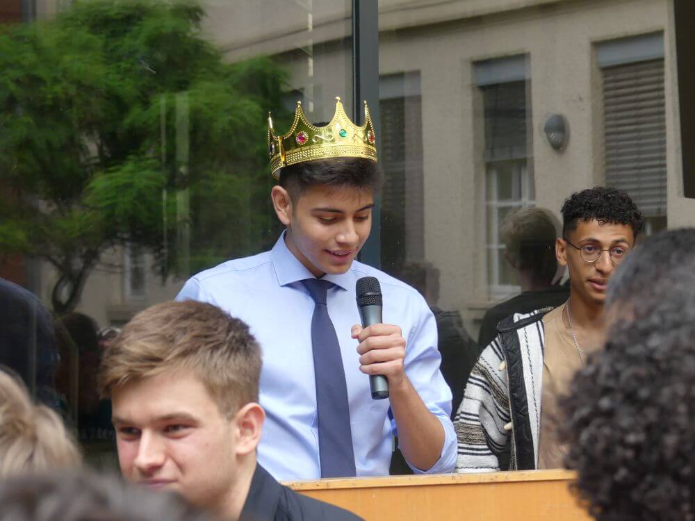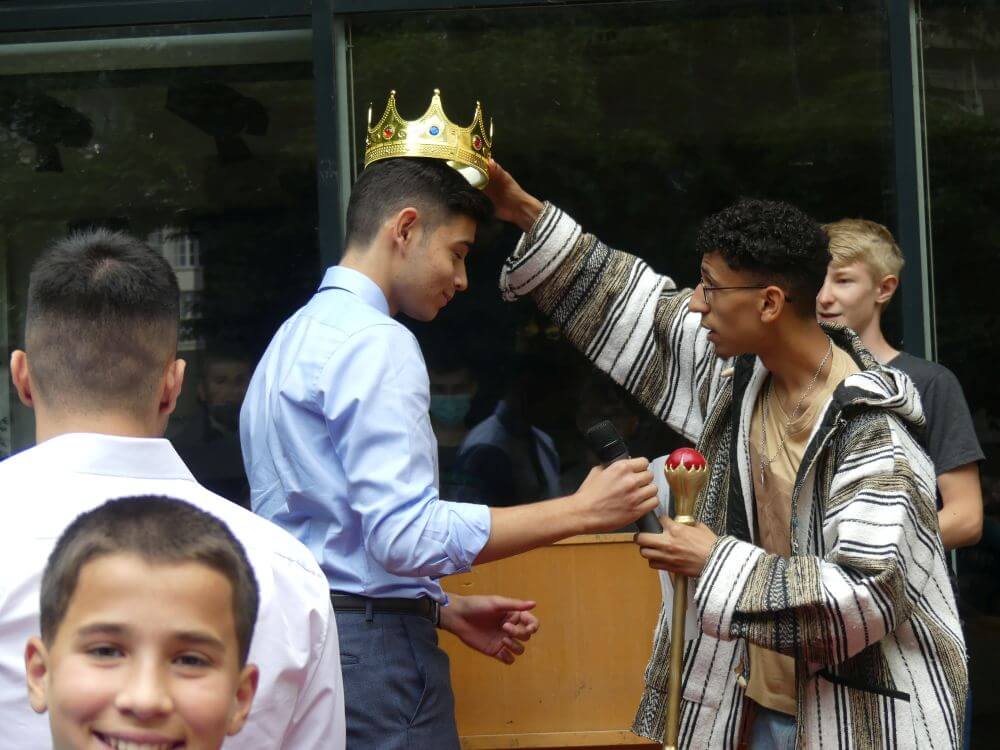 Gekrönt wurde er in einer feierlichen Zeremonie von seinem Vorgänger König Ahmed, der zwar kein Schüler des Schlossgymnasiums mehr ist, aber im Herzen immer ein Teil des Staates Schlopolis bleiben wird.