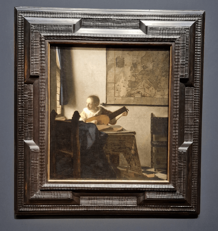 Auch die Details in den Gemälden ist nicht zu vergessen. Vermeer malte ganze Landkarten, wie es in Die Malkunst oder Der Soldat und Das lachende Mädchen. Sel