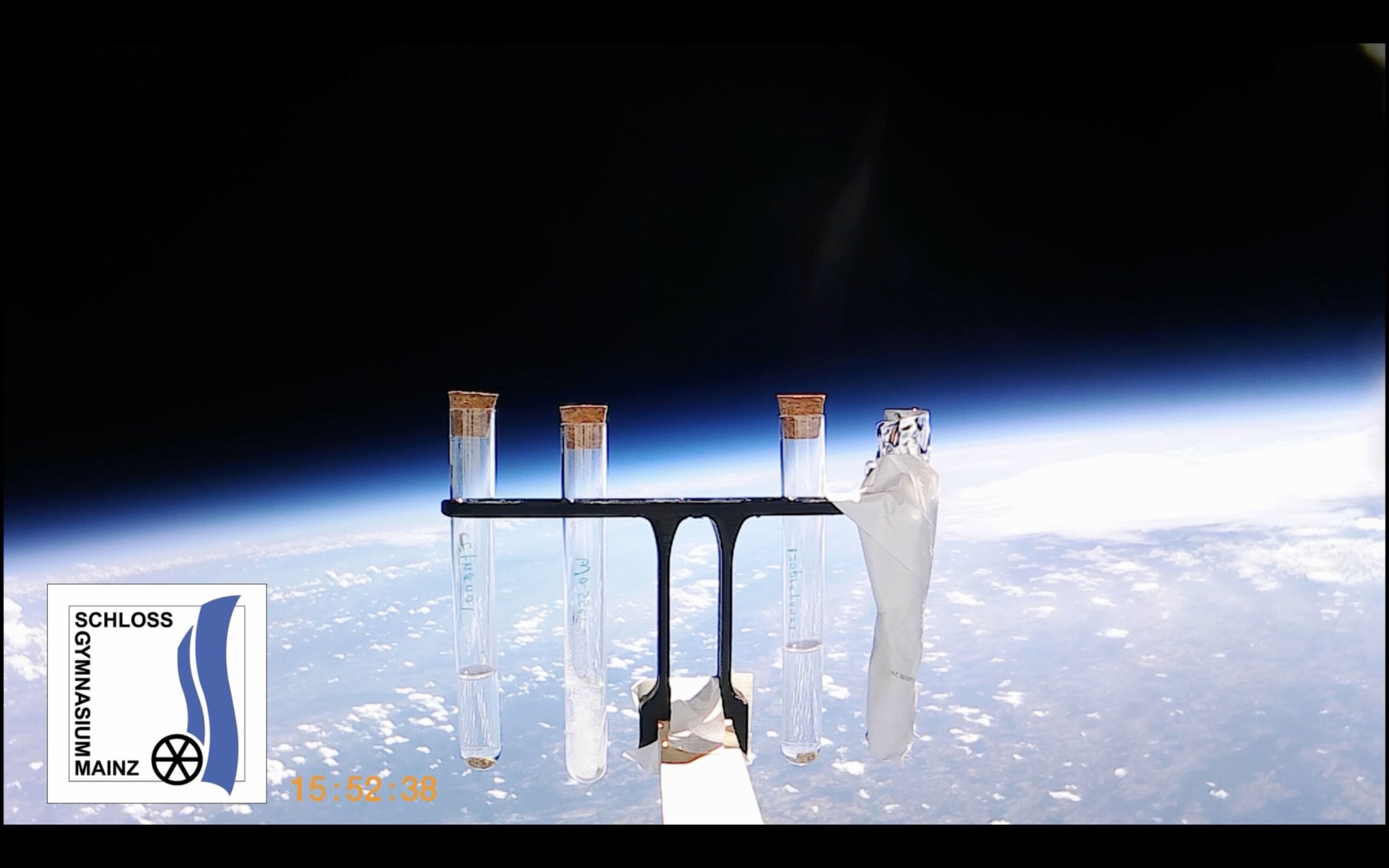 Am 11.07.23 fand der erste Stratosphärenflug des Schlossgymnasiums statt. In Zusammenarbeit mit dem Deutschen Zentrum für Luft- und Raumfahrt transportierte ein heliumgefüllter Ballon eine Messsonde in die Stratosphäre. Der Ballon platzte in 38 km Höhe und die Sonde fiel von einem Fallschirm gebremst wieder auf die Erde. Per GPS konnte sie gefunden und geborgen werden. Alle Geräte waren intakt und haben Messwerte aufgezeichnet. Mittlerweile liegen die ersten Messergebnisse vor.