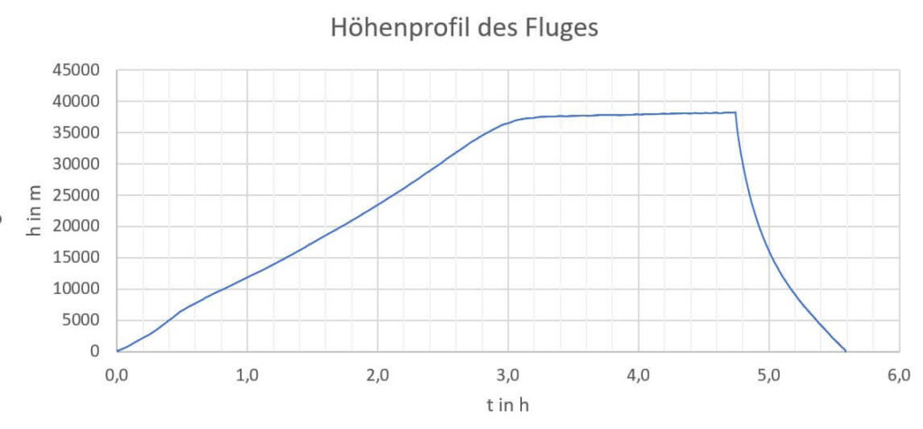 Die Sonde erreichte auf ihrem fünfeinhalbstündigen Flug eine maximale Höhe von 38 km. Sie legte dabei eine Strecke von 349 km zurück, die sie zunächst östlich über das Frankfurter Stadtgebiet bis in den bayerischen Landkreis Bad Kissingen führte, dann wieder westlich bis in die Eifel und schließlich noch nördlich nach Koblenz, wo sie dann landete. Dabei wurde zweimal der Rhein überflogen, viermal der Main und zweimal die Mosel. Die durchschnittliche Geschwindigkeit des Ballons über Grund war mit 62 km/h eher gemächlich. Dafür wurde im freien Fall in der dünnen Luft der Stratosphäre nach dem Platzen des Ballons eine maximale Sinkgeschwindigkeit von 238 km/h erreicht. Ballon und Sonde mussten Temperaturen von 36 °C beim Start in Mainz bis -50 °C in der oberen Troposphäre aushalten.