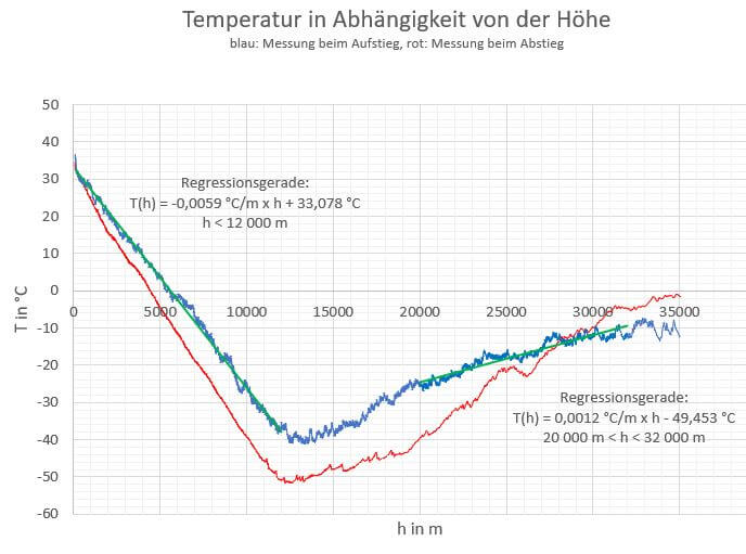 Bei der Mission wurde die Temperatur in der Atmosphäre gemessen. Es gelang nachzuweisen, dass sie zunächst in der Troposphäre bis auf ca. -50 °C sinkt, um dann in der Stratosphäre wieder bis auf ca. 0 °C anzusteigen. Grund dafür ist die Ozonschichte, die sich in dieser Höhe befindet. Die Ozonmoleküle sind schwingende Dipole, die Wärmestrahlung aussenden. Durch eine chemische Reaktion, nämlich den Farbwechsel eines mit Kaliumiodid-Stärkelösung getränkten Filterpapiers, konnte das Ozon direkt nachgewiesen werden. Weitere Messungen wurden zum Luftdruck durchgeführt. Dabei konnte die Gültigkeit der internationalen Höhenformel für den Bereich der Troposphäre gezeigt werden. Schließlich zeigen unsere Messwerte auch, dass die Luftfeuchtigkeit in der Stratosphäre 0 % beträgt. Dies liegt daran, dass alles Wasser spätestens am Rand der kalten Troposphäre kondensiert. Dies bedeutet, dass sich oberhalb der Troposphäre keine Wolken mehr befinden und der gesamte Wasserkreislauf der Erde in der untersten Schicht der Atmosphäre, der Troposphäre stattfindet.