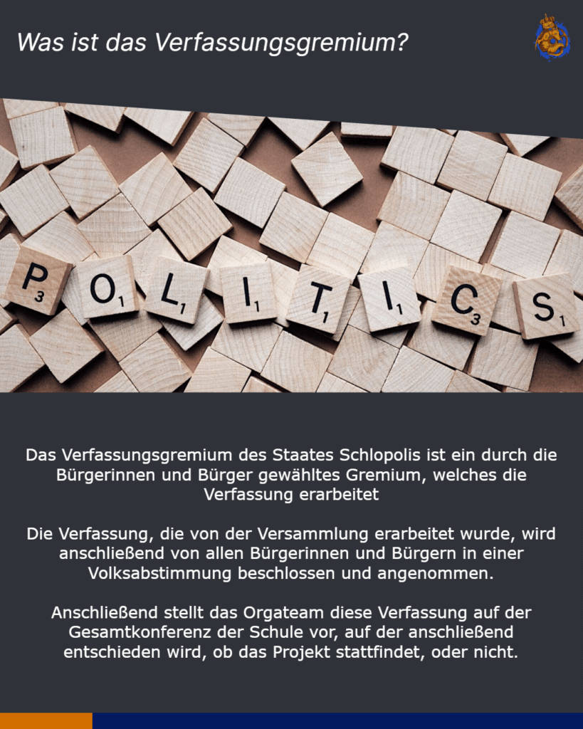 wie bereits vor einiger Zeit angekündigt findet am 01.12.2023 die Wahl zum verfassungsgebenden Gremium des Staates Schlopolis statt.