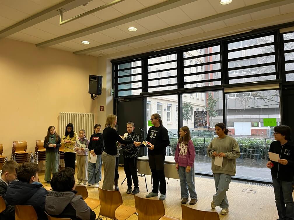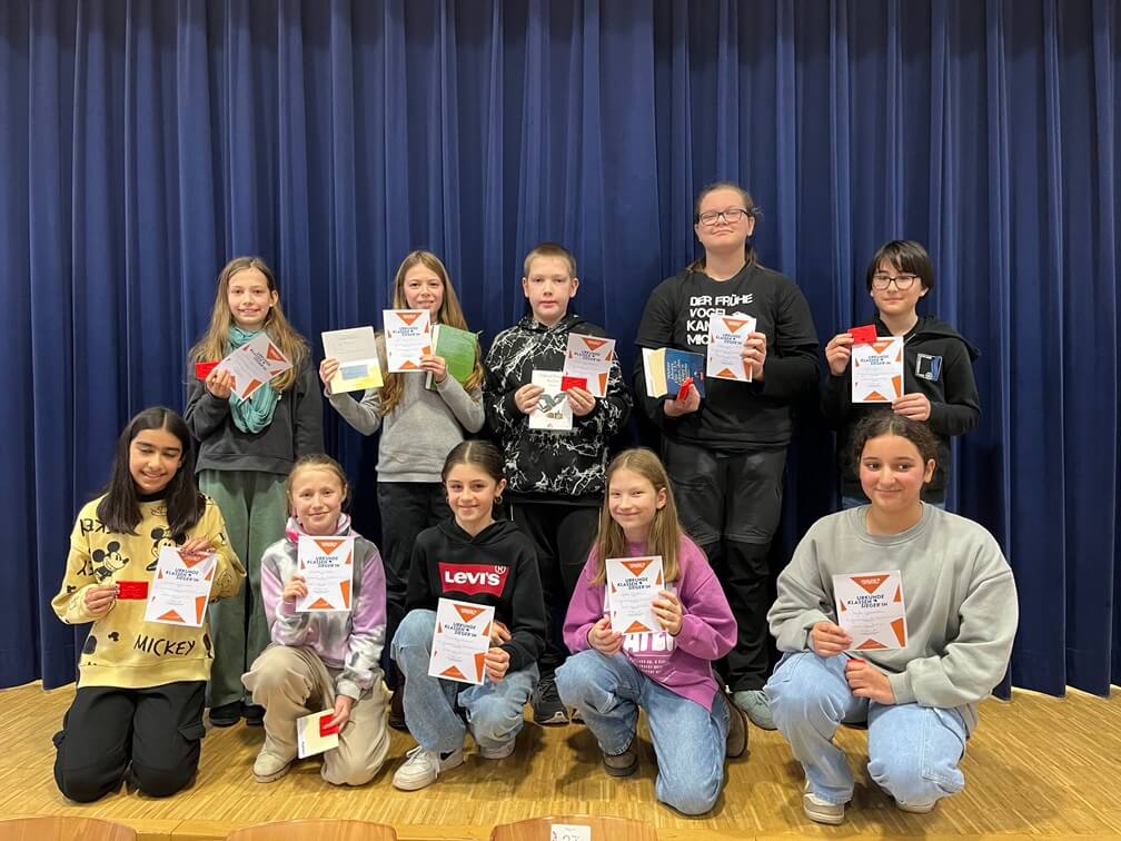Am Freitag, den 8. Dezember 2023 war es so weit. Zehn Schülerinnen und Schüler der sechsten Jahrgangsstufe traten als Klassensieger im schulinternen Vorlesewettbewerb gegeneinander an.