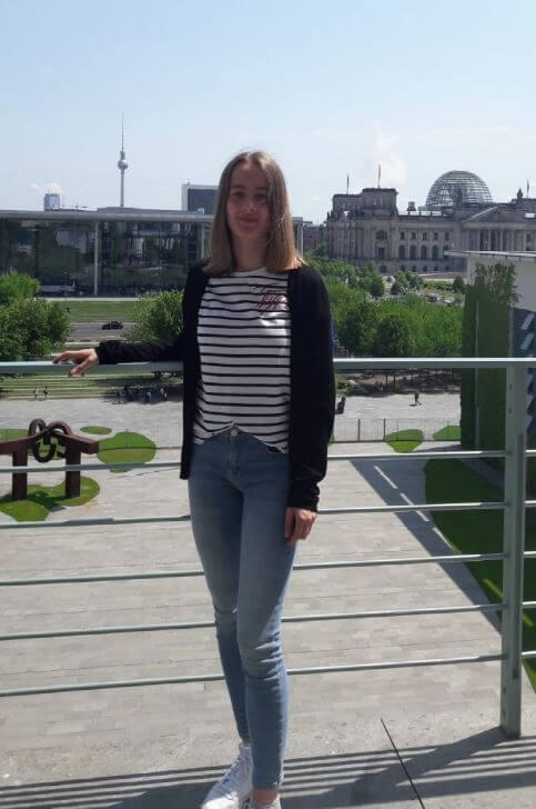 Die Reise begann am Montag dem 3. Juli 2019. Jeder Preisträger musste eigenständig nach Berlin fahren, wo wir uns im Hotel Holiday Inn trafen, wo wir die nächsten Tage verbringen würden. Als ich dort ankam empfing mich die Leiterin der Reise und gab mir meine Zimmerkarte. Wir hatten Doppelzimmer, d.h. Ich teilte mir mein Zimmer mit einem anderen Mädchen. Nachdem ich meine Sachen in mein Zimmer gebracht hatte, ging ich in die Eingangshalle, wo wir uns treffen sollten. Dort warteten schon die anderen Teilnehmer, die ungefähr im Alter zwischen 16 und 20 Jahren waren, und wir gingen in den Essensraum, wo wir zusammen Mittag aßen. Nach dem Essen, bei dem wir uns gegenseitig kennenlernen konnten, stellten sich die Veranstalter der Reise vor und wir erhielten das Programm für die nächsten Tage, welches wir vorher schon per E-mail erhalten haben, weshalb wir schon wussten was auf uns zu kommt. Es war ein sehr dichtes Programm.