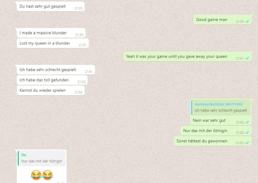 [su_note note_color=“#5ae9fc“ text_color=“#8b8383″ radius=“4″]Wir haben begonnen zu telefonieren, jedoch war es still. Wir wussten beide nicht was wir sagen sollen. Die Stille wurde fast schon peinlich. Nach kurzer Zeit fingen mein Austauschpartner und Ich jedoch gleichzeitig an darüber zu reden, dass Mainz am Tag davor gegen Bayern gewonnen hat (Wir unterhalten uns oft über Fußball). Wir fanden diesen Moment lustig und er hat die Stimmung aufgelockert. Es hat uns geholfen und danach konnten wir ein sehr angenehmes Gespräch führen.