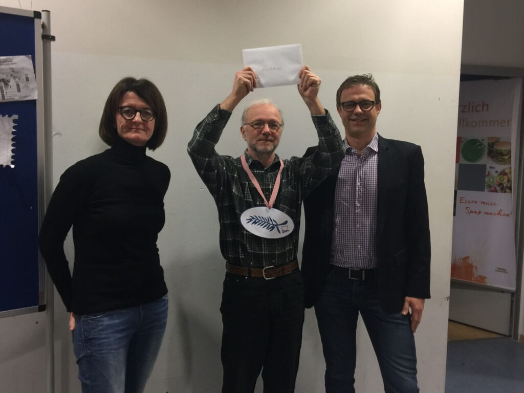 Während der Mitgliederversammlung wurden drei langjährige engagierte Mitglieder – Ulrike Müller, Andreas Gruschkus und Ralf Westphal – herzlich mit Gesang, Blumen und mehr verabschiedet. Dr. Schmitz bedankte sich für ihren langjährigen Einsatz zum Wohle des Schlossgymnasiums und drückte seine Zuversicht aus, dass sie als Mitglieder des Fördervereins der Schule weiterhin verbunden bleiben.