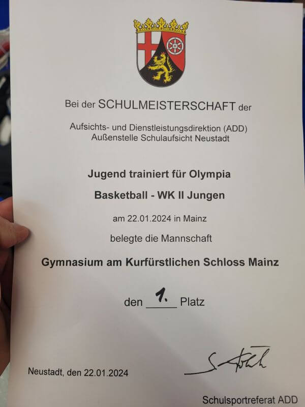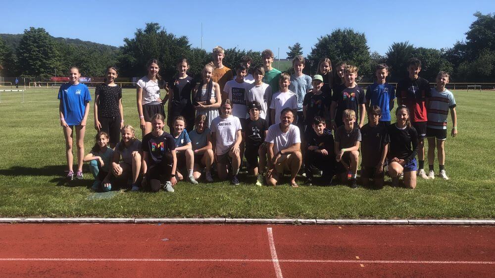 Am 26. Juni 2025 mussten alle früh aufstehen, denn dieses Mal fand der Landesentscheid in Konz statt. Das bedeutete eine Anfahrt von zweieinhalb Stunden, tat der guten Laune aber keinen Abbruch. Die wurde erst durch anhaltende Regenschauer und die anschließende Absage des Hochsprungs getrübt. Die später zweitplatzierte Mannschaft jubelte, wir nicht, da der Hochsprung durch Lucas und Felix eine unserer Stärken war.