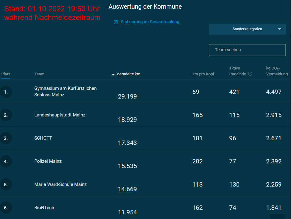 erstellt und damit deutlich nach dem offiziellen Ende der Nachtragsfrist am 01.07.2023 für das Stadtradeln in Mainz.