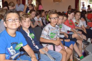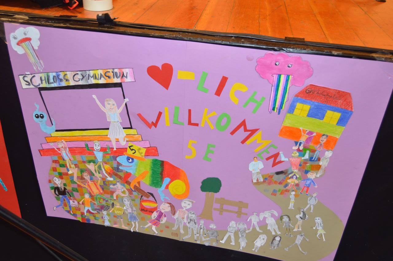 Unsere Schulleiterin Frau Ding, unsere Orientierungsstufenleiterin Frau Behr, die Tutorinnen und Tutoren der “Neuen” aus der 11. Jahrgangsstufe und viele Vertreter und Vertreterinnen der jetzigen 5. Klassen begrüßten die „Neuen“ mit liebevoll gestalteten Willkommensplakaten, Namensschildern und einem abwechslungsreichen Programm aus Gesang, Gedichten, einem kleinen Theaterstück und einer gelungenen, “fetzigen” Tanzeinlage. Das alles wurde im Unterricht und im Rahmen der Ganztagsschule vorbereitet. Die Kinder lernten das Klassenleiterteam ihrer neuen Klasse sowie ihre neuen Klassenkameraden und Klassenkameradinnen kennen und verbrachten eine erste „Unterrichtsstunde“ in ihrem neuen Klassenraum. Dort bekamen sie auch eine Willkommensmappe, in der alle wichtigen Informationen für den Schulbeginn im August enthalten sind. Erste Klassenfotos wurden gemacht.