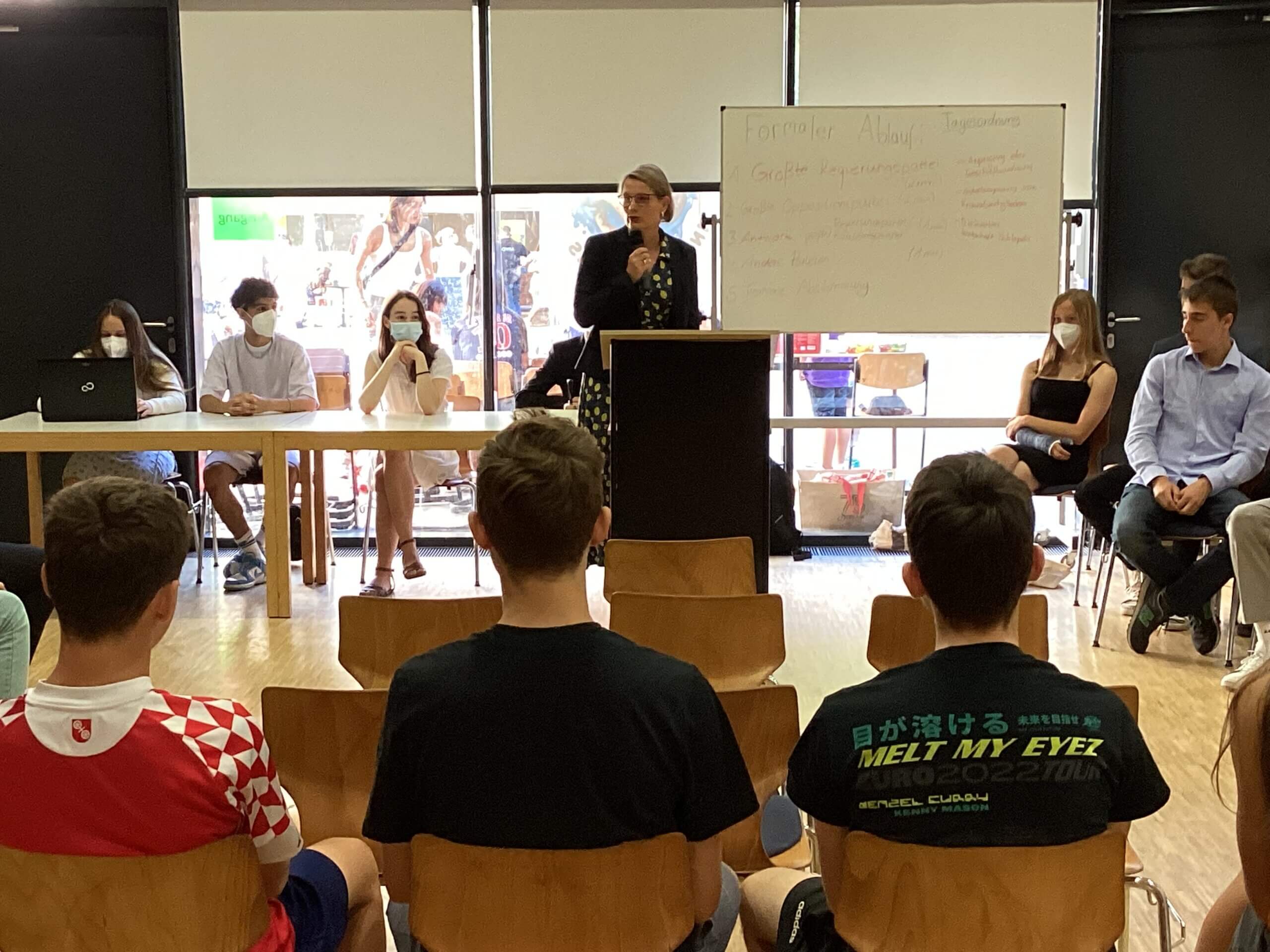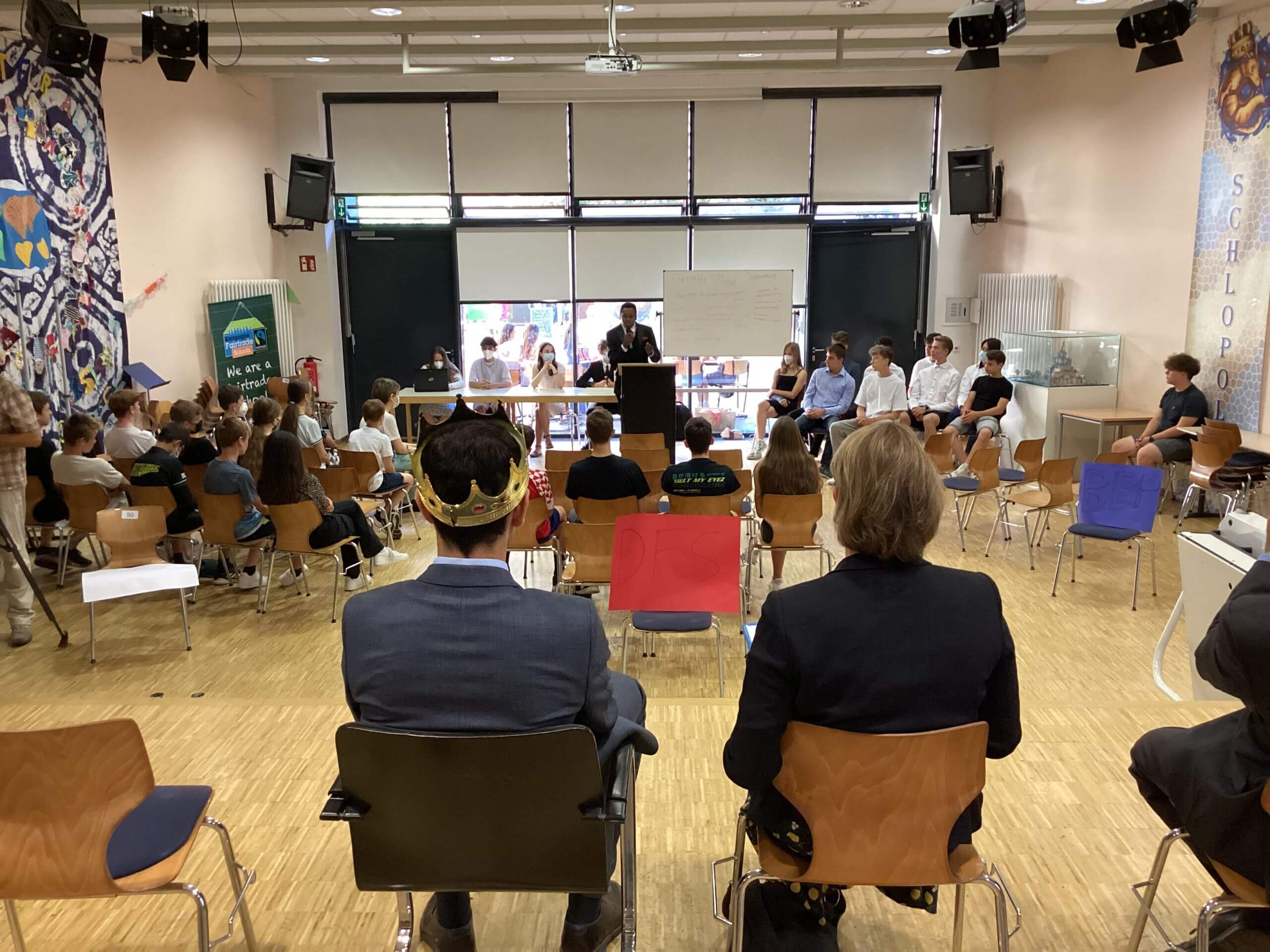 Dafür werden alle Klassen während des Tages in die Aula kommen, damit dort jede wahlberechtigte Person ihre Stimme abgeben kann.